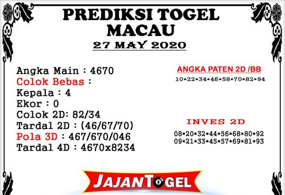 PREDIKSI TOGEL TOTO MACAU 1 07 JUNI 2020 Prediksi Togel Akurat Kasir4D